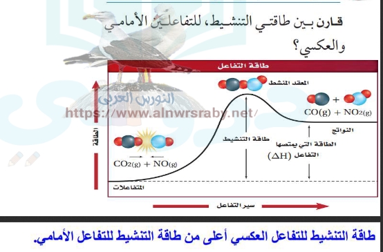 قارن بين طاقتي التنشيط للتفاعلين الأمامي والعكسي ؟