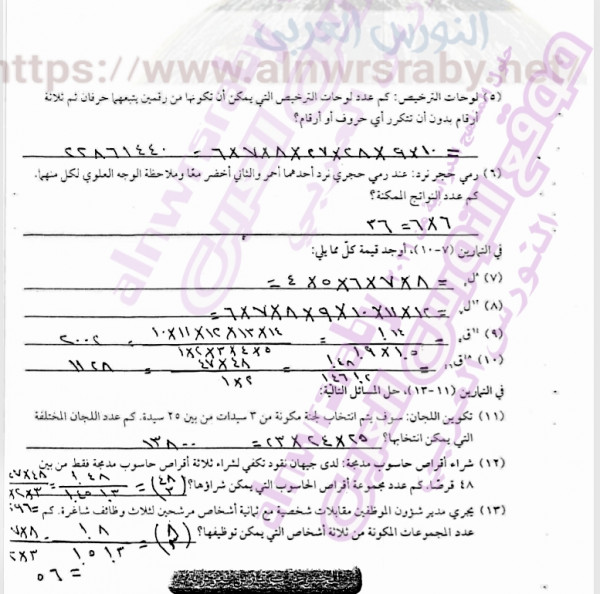 اسائلة درس طرق العد